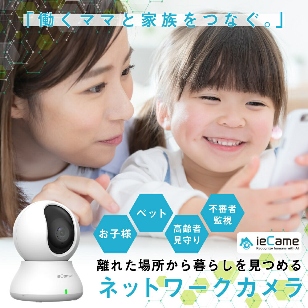 【国内ブランド】ieCame IPカメラ RS-WFCAM2 小型 防犯カメラ 子供 見守り カメラ ペット 家庭用 スマホ クラウド SDカード ネットワークカメラ WiFi 室内 首振り 動体検知 通知