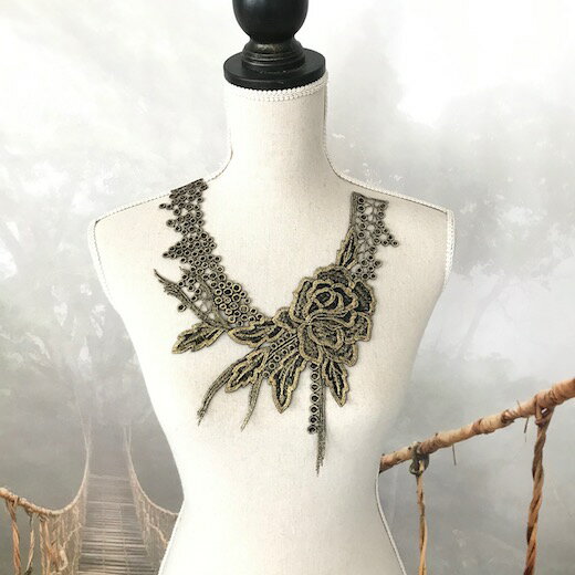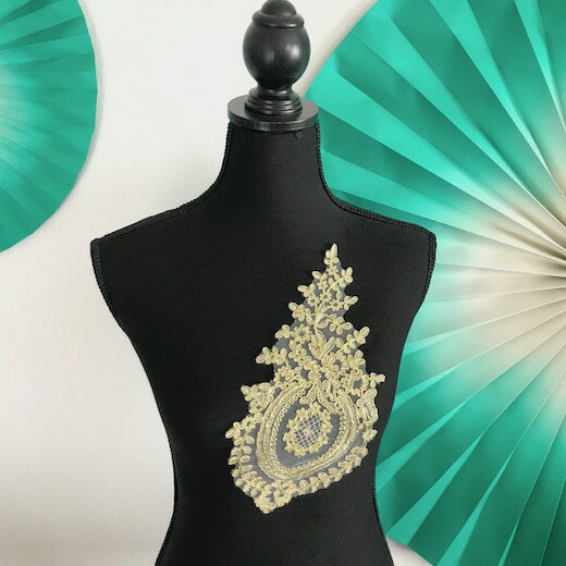 襟レース レース襟 花柄 金色 襟モチーフ ゴールド エレガント キラキラ 付け襟 レース ダンス 衣装 ハンドメイド 襟 素材 材料 レオタード バトンモチーフ バレエ ダンス